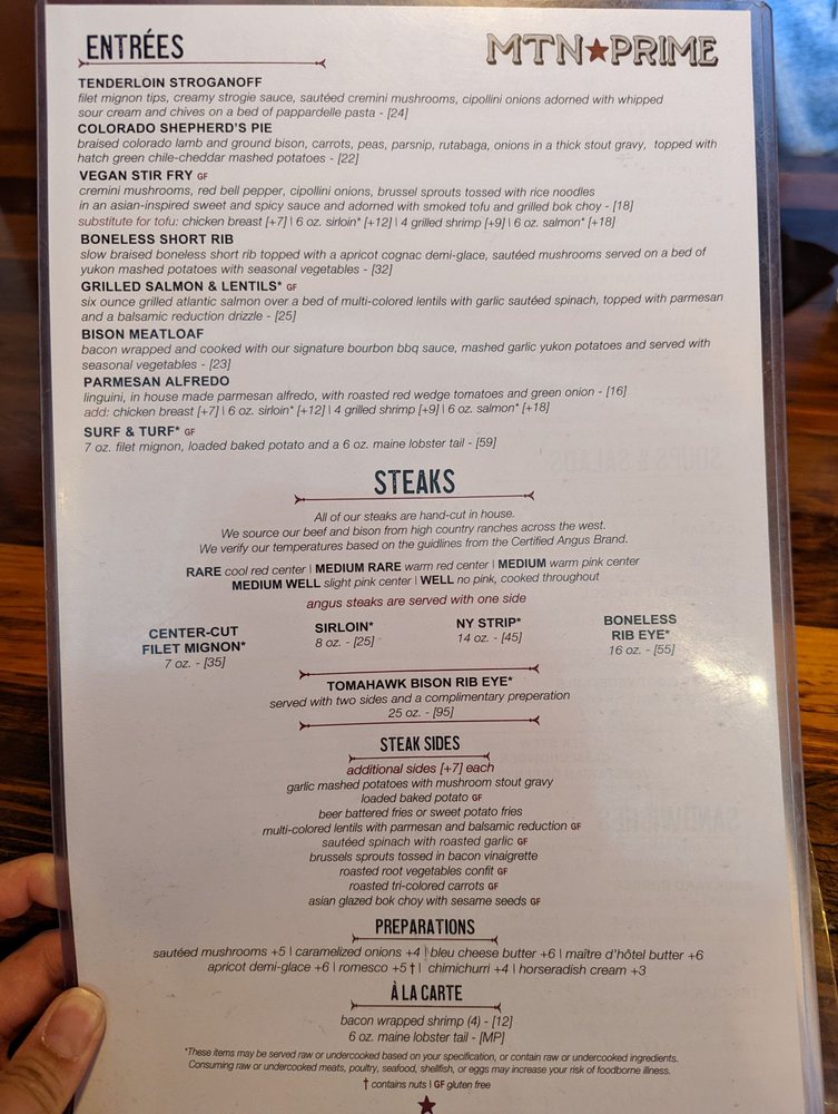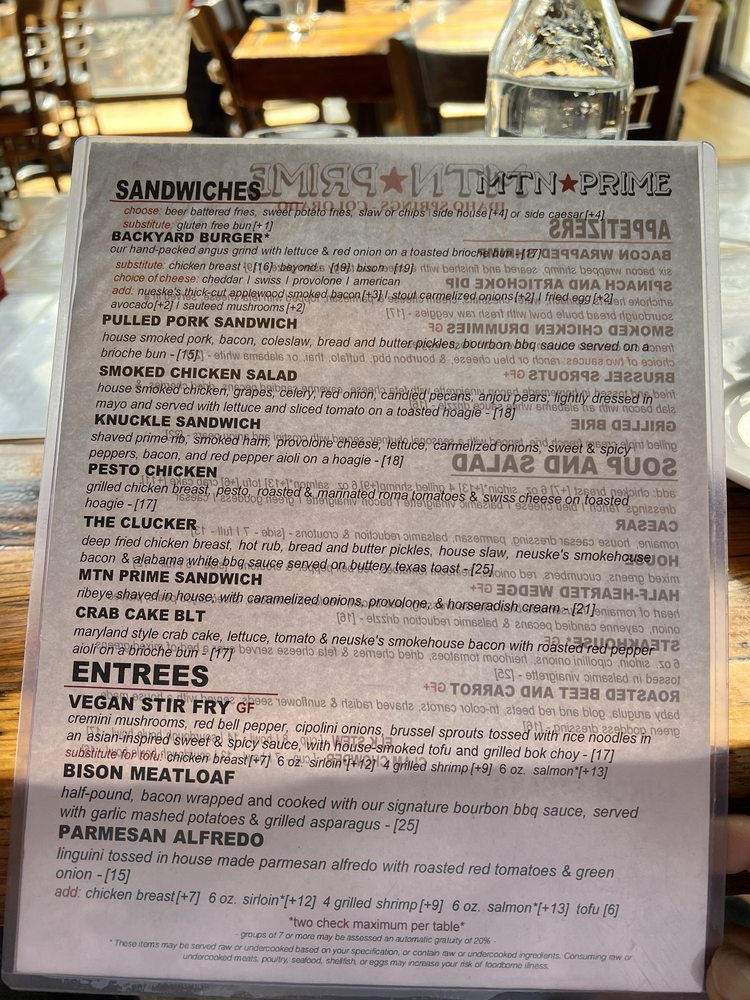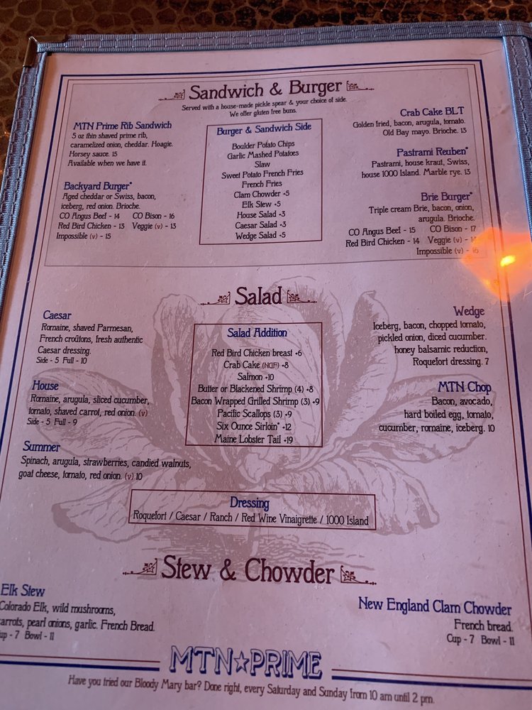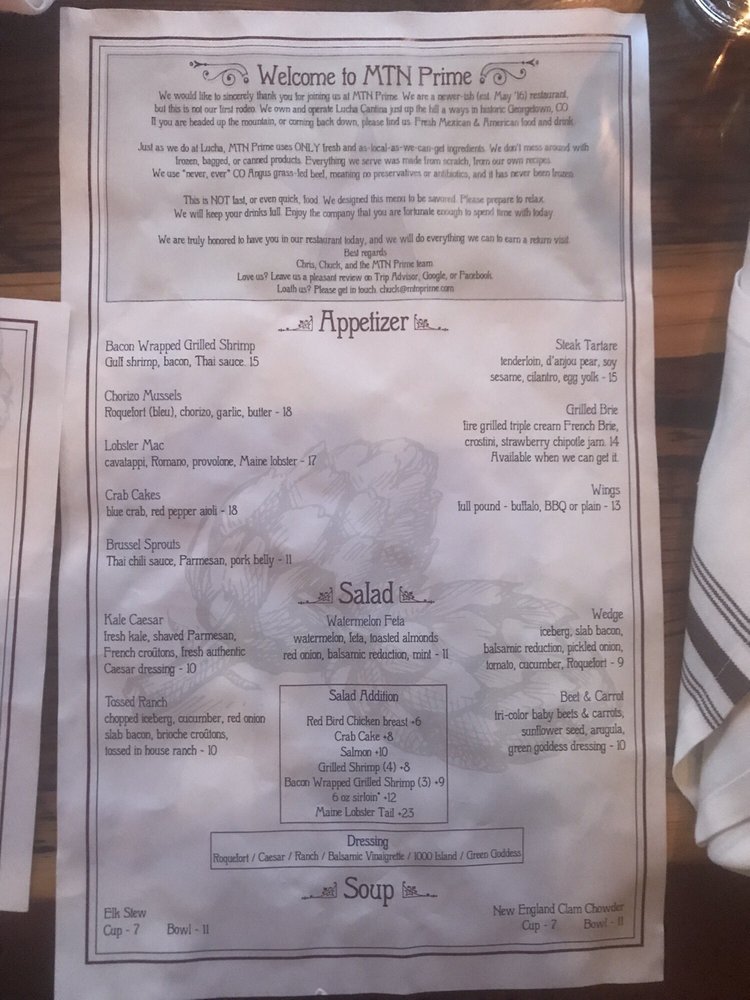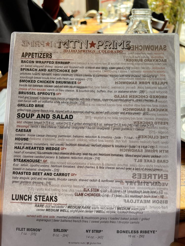 MTN Prime is a versatile American eatery located in the picturesque Idaho Springs, CO. This steakhouse-salad fusion offers a range of options from bacon-wrapped grilled shrimp to elk stew. The menu includes unique dishes like brussel sprouts with bacon vinaigrette and cayenne candied pecans, and a wedge salad with bleu cheese crumbles and cayenne candied pecans. Customers rave about the flavorful bacon-wrapped shrimp and the tenderloin stroganoff. The cozy mountain cabin ambiance adds to the dining experience, making it a perfect stop for a meal on the way to Breckenridge. With accommodating options like keto and vegan choices, MTN Prime caters to a diverse range of tastes. Don't miss out on the delicious food and friendly service at MTN Prime.
